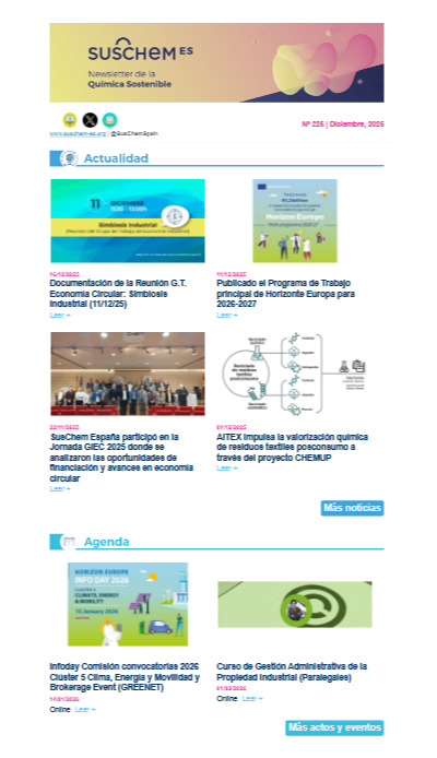 Sistema de ofertas y demandas tecnológicas de SusChem-España con la química sostenible.