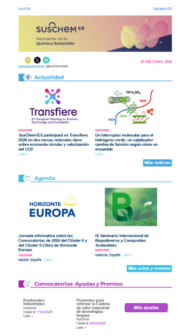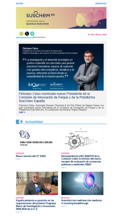 Sistema de ofertas y demandas tecnológicas de SusChem-España con la química sostenible.